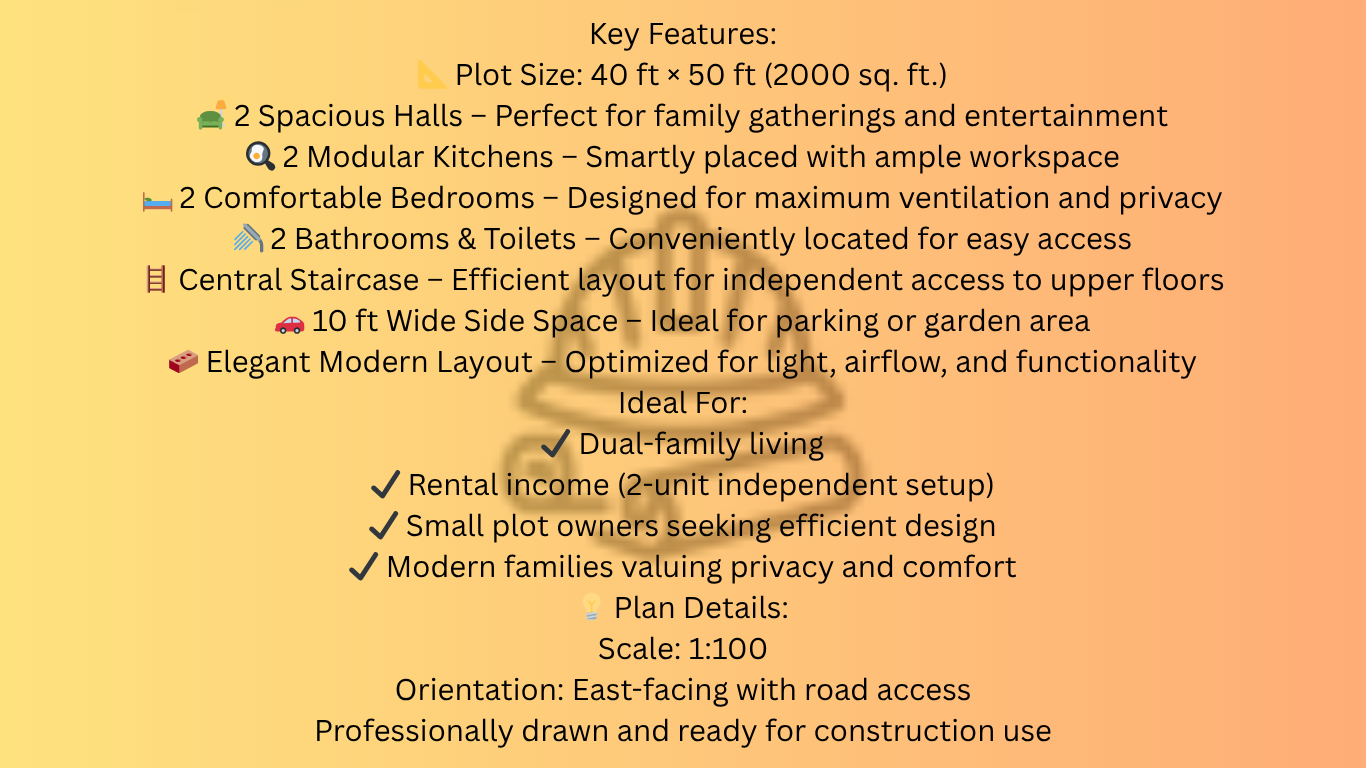 • 📐 Plot Size: 40 ft × 50 ft (2000 sq. ft.)